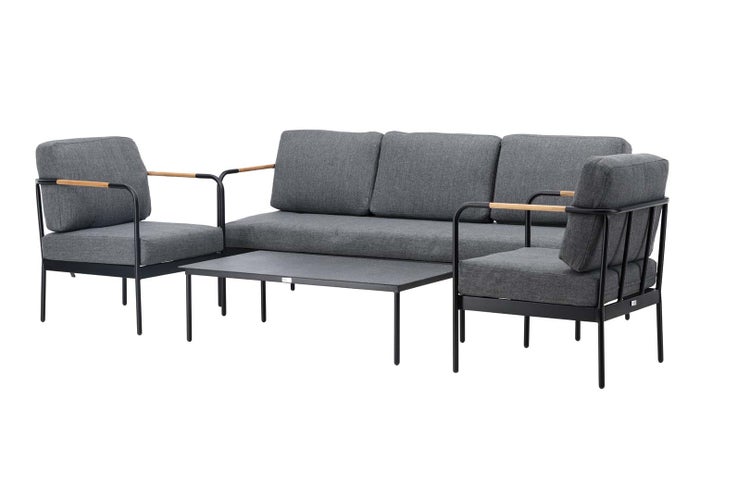 Das Pehnna-Lounge-Set 4-teilig schwarz, grau ist ein Lounge-Möbel in der Farbe Schwarz, das sowohl Stil als auch Funktionalität in Ihr Zuhause bringt. Pehnna Lounge-Set 4-teilig schwarz, grau. Stuhl 2 Stk. schwarz inkl. Kissen, B x H x T cm: 70/73,5/73, Sitzhöhe cm: 32, Sitztiefe cm: 65,5, Max. Gewicht kg.: 120. Sofa grau exkl. Kissen, B x H x T cm: 105/73,5/73, Sitzhöhe cm: 32, Sitztiefe cm: 65. Tisch schwarz, B x H x T cm: 70/35/120. Dieses Produkt wurde mit viel Liebe zum Detail hergestellt, was sowohl Ästhetik als auch hohe Haltbarkeit gewährleistet. Bei der Gestaltung wurde sowohl auf Funktionalität als auch auf Stil geachtet, was es zur perfekten Wahl für jeden Raum in Ihrem Zuhause macht. Die verwendeten Materialien sind von hoher Qualität, was dem Produkt eine lange Lebensdauer verleiht und dafür sorgt, dass es dem täglichen Gebrauch standhält. Ob zur Aufbewahrung oder als dekorative Ergänzung, dieses Produkt wertet Ihre Einrichtung auf und bringt zusätzlichen Komfort und Eleganz in Ihr Zuhause.