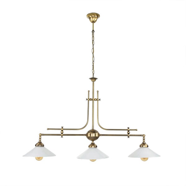 Pendelleuchte Glas Echt-Messing L: 104,5 cm H: max. 116,5 cm in Bronze hell Weiß E27 3-flammig Jugendstil Hängelampe