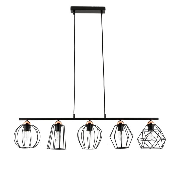 Verleihe Deinem Zuhause Charakter und Stil – mit dieser Pendelleuchte 5‑flammig im Industrial Design wird jede Mahlzeit zum Highlight. Die markante Kombination aus Schwarz und Kupfer verleiht Deinem Raum Tiefe und Eleganz. Ideal als Hängelampe über dem Esstisch, entfaltet sie auf 97 cm Länge ihre volle Wirkung – gleichmäßig verteiltes Licht über dem Tisch, der Theke oder dem Wohnbereich. Die edle Materialwahl aus Metall garantiert nicht nur Stabilität, sondern auch ein modernes Erscheinungsbild, das sich perfekt in Industrial‑, Vintage‑ oder Loft‑Konzepte einfügt. Ob im Esszimmer, Wohnzimmer oder über der Kücheninsel – diese moderne Hängeleuchte erzeugt stimmungsvolles Licht und unterstreicht deine individuelle Einrichtung. Dank der E27-Fassungen hast dDu volle Freiheit bei der Auswahl der Leuchtmittel – wähle je nach Stimmung warmes Wohlfühllicht oder klare Helligkeit. So entsteht genau das Ambiente, das Du Dir wünschst. Diese Leuchte ist nicht nur funktional, sondern setzt gezielt stilvolle Akzente in Deinem Zuhause. Mach Deinen Wohnraum zu etwas Besonderem – mit einer Leuchte, die Design und Atmosphäre vereint.