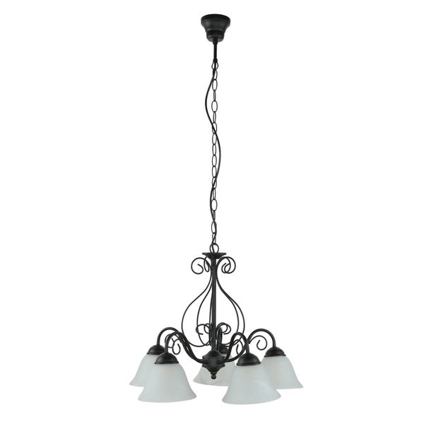 Pendelleuchte Schwarz matt Weiß Rustikal Metall Glas E14 B: 52 cm H: max. 108,5 cm Hängelampe