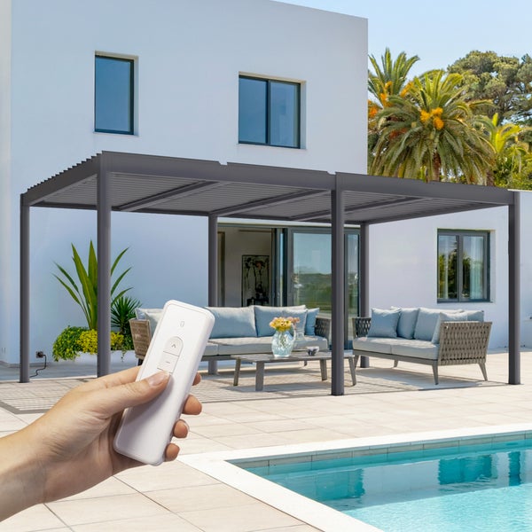 Pergola bioklimatisch aus graue Aluminium SANTA 5x3m - elektrisch verstellbares Lamellendach