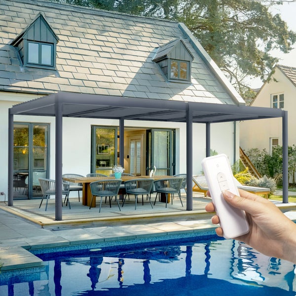 Pergola bioklimatisch aus graue Aluminium SANTA 6x3m - elektrisch verstellbares Lamellendach