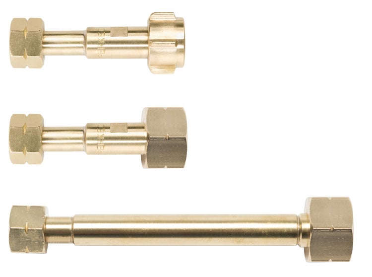 Zum selbst Befüllen von 0,425 kg-Kleinflaschen. Feine Siebe (s. Bild) schützen vor Verschmutzung. Lange Ausführung für Flaschen mit Halsring. Eingang W21,8x1/14“LH, Ausgang G3/8“ LH.