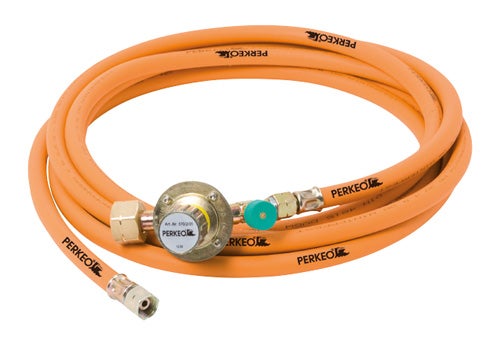 0,5-4 bar - regulierbar, Druckklasse: HD, Propan-Hochdruckschläuche nach EN 16436-1 (DIN 4815) mit Regler, fertig montiert mit Regler inklusive SBS (Schlauchbruchsicherung) und DVGW-geprüft, für alle PERKEO Aufschweißbrenner geeignet, Betriebsdruck 30 bar, Durchmesser 6 mm x Wandstärke 5 mm, extra flexibel, alle Regler mit Kombi-Anschluss passend für 5 kg-, 11 kg-, 22 kg- und 33 kg-Flaschen, Eingang W21,8x1/14“ LH, Schlauchanschlüsse G3/8“ LH x G3/8“ LH