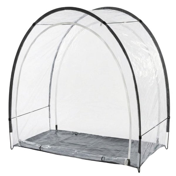 Das Pflanzenzelt dient zur Überwinterung von empfindlichen Pflanzen und bietet Schutz vor Regen und Schnee. Durch die transparenten Wände dringt genügend Sonne in das Zelt und es speichert die Wärme. So bietet das Pflanzenzelt im Frühjahr optimale Bedingungen zur Anzucht von Setzlingen. Im Sommer kann es als Gewächshaus genutzt werden und schützt Pflanzen vor direktem Regen. Das Gewächshaus lässt sich zu zweit oder dritt leicht innerhalb von Minuten zusammenbauen. Durch die Reißverschlüsse an beiden Seiten kann das Pflanzenzelt großzügig zum Befüllen und Durchlüften geöffnet werden.