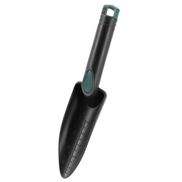 Die Pflanzkelle aus Kunststoff ist leicht und hat eine Gesamtlänge von 29 cm. Die gummierte Daumenmulde am Griff hat eine geriffelte Oberfläche und bietet sicheren Halt. Durch die schmale Arbeitsbreite von 5,5 cm lassen sich dichtbewachsene Stellen im Garten bearbeiten. Die Markierungen auf der Klinge geben die Tiefe in Zentimeter und Inch an.