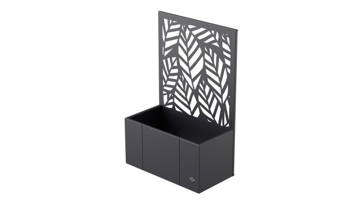 Unser Pflanzkübel mit Sichtschutz Vernazza aus witterungsbeständigem Metall eignet sich optimal für die Terrasse oder den Balkon. Er besitzt die Maße 40 x 80 x 40 cm. Nutzen Sie die integrierte Sichtschutzwand, um hier Kletterpflanzen ranken zu lassen! Die Höhe des Sichtschutzes beträgt 120 cm.