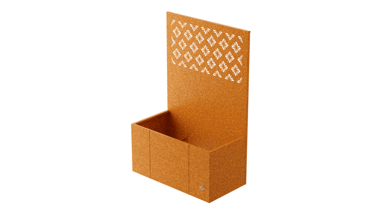 Unser Pflanzkübel mit Sichtschutz Vernazza aus wetterfestem Cortenstahl findet sowohl auf der Terrasse als auch auf dem Balkon Platz. Er besitzt die Maße 40 x 80 x 40 cm. Die integrierte Sichtschutzwand eignet sich wunderbar zur Begrünung mit Rankpflanzen. Die Höhe des Sichtschutzes beträgt 120 cm.