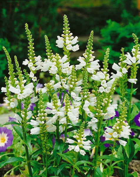 Physostegia virginiana ‘Summer Snow’, die weiße Gelenkblume, ist eine elegante Blütenstaude, die mit reinweißen, kerzenförmigen Blütenähren und frischgrünem, lanzettlichem Laub jeden Ziergarten bereichert. Der aufrechte, horstige Wuchs erreicht je nach Standort etwa 60 bis 80 cm Höhe und bildet standfeste, klar strukturierte Staudenhorste, die von Juli bis September zuverlässig blühen. Die dicht besetzten Blütenstände sorgen für eine lange Zierwirkung im Staudenbeet und setzen helle Akzente in naturnahen Pflanzungen, Cottage-Gärten und klassischen Rabatten. Als Gartenstaude eignet sich ‘Summer Snow’ sowohl für die Gruppenpflanzung als auch als dezent strahlender Solitär; sie harmoniert hervorragend mit Gräsern, Purpur-Sonnenhut oder Herbst-Anemonen und ist zugleich eine wertige Schnittblume für die Vase. In größeren Gefäßen macht die Gelenkblume als Kübelpflanze auf Balkon und Terrasse eine gute Figur, ebenso am lichten Teichrand oder im Vorgarten, wo sie strukturgebende Vertikalen liefert. Bevorzugt wird ein sonniger bis halbschattiger Standort mit frischem, humosem, gut durchlässigem Boden; gleichmäßige Bodenfeuchte fördert die anhaltende Blüte, längere Trockenphasen sollten vermieden werden. Ein Rückschnitt der verblühten Ähren verlängert die Blühdauer und hält den Zierstrauch-Charakter der Pflanze gepflegt. Teilung älterer Horste im Frühjahr oder Herbst erhält Vitalität und Wuchsfreude. Robust, winterhart und pflegeleicht bereichert Physostegia virginiana ‘Summer Snow’ als vielseitiger Blütenstrauch jedes Staudenbeet, vom repräsentativen Eingangsbereich bis zur entspannten Terrassenbepflanzung.