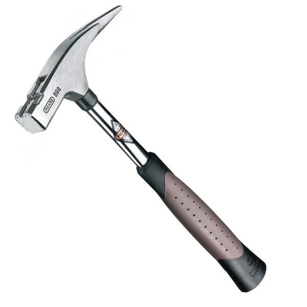 für höchste Ansprüche TÜV zertifiziert Hammerkopf fein blank Klaue und Spitze besonders gehärtet Chrom-Molybdän-Stahlrohrstiel mit hohem Auge ergonomischer, schwingungsdämpfender 2-Komponenten-Griff braun/schwarz mit Kopfsicherung mit magnetischem Nagelhalter Merkmale glatte Schlagfläche