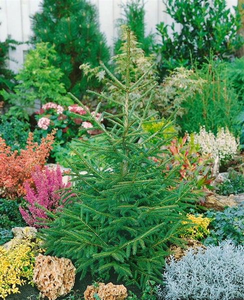 Ideal ist Picea orientalis ‘Aurea Compacta’ für Steingarten, Heidebeet, Japangarten und als formschöne Kübelpflanze auf Terrasse oder Balkon. In Gruppenpflanzung setzt sie ruhige, immergrüne Akzente, als niedrige Einfassung oder strukturgebende Heckenpflanze sorgt sie für klare Linien entlang von Wegen und Beeten. Ein sonniger bis halbschattiger Standort fördert die goldene Austriebsfärbung; in voller Sonne ist ein frischer, humoser und gleichmäßig feuchter, jedoch gut drainierter Boden wichtig, um Nadelschäden zu vermeiden. Staunässe wird schlecht vertragen, eine leicht saure bis neutrale Erde ist vorteilhaft. Die Pflege beschränkt sich auf gelegentliches Wässern in Trockenphasen und eine maßvolle Herbstdüngung mit Koniferendünger; ein Schnitt ist im Regelfall nicht nötig, leichte Korrekturen sind gut verträglich. Robust, zuverlässig und winterhart bereichert diese Orientalische Fichte als dekorativer Gartenbaum jede Gestaltung mit langlebiger, edler Präsenz.