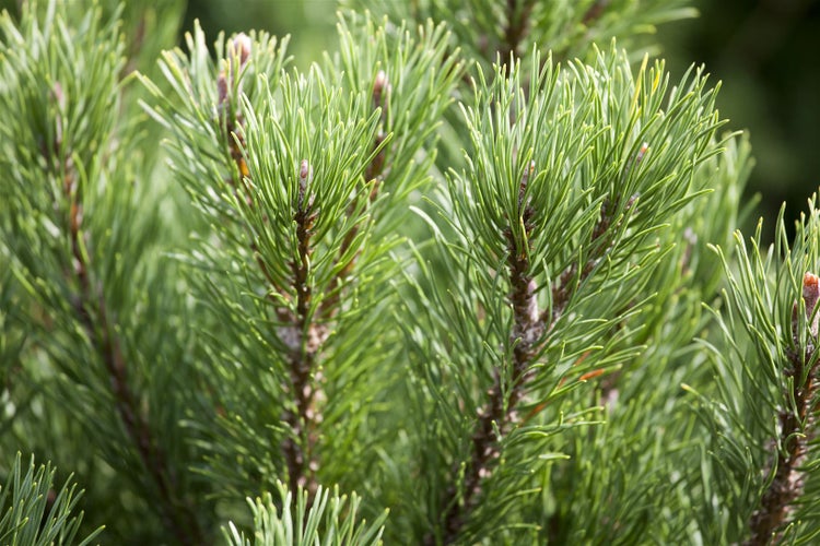 Pinus mugo ‘Carsten’s Wintergold’, die Bergkiefer ‘Carsten’s Wintergold’, ist ein besonders attraktives Nadelgehölz, das mit intensiver Winterfärbung begeistert. Im Sommer frischgrün, verwandeln sich die kurzen, dichten Nadeln in der kalten Jahreszeit zu leuchtendem Goldgelb mit warmem Orangeton und setzen so in Beet und Vorgarten eindrucksvolle Akzente. Der Wuchs ist langsam, kompakt und gleichmäßig, meist kugelig bis breitbuschig, wodurch dieses immergrüne Ziergehölz als kleiner Gartenstrauch ideal für den Steingarten, das Heidebeet, den japanisch inspirierten Garten und die Grabgestaltung ist. Als Solitär im Vordergrund von Pflanzungen oder in Gruppenpflanzung mit Gräsern, Stauden und anderen Koniferen entstehen harmonische Kontraste; im hochwertigen Terrassenkübel entfaltet die Kübelpflanze ganzjährig Struktur und Farbe.
