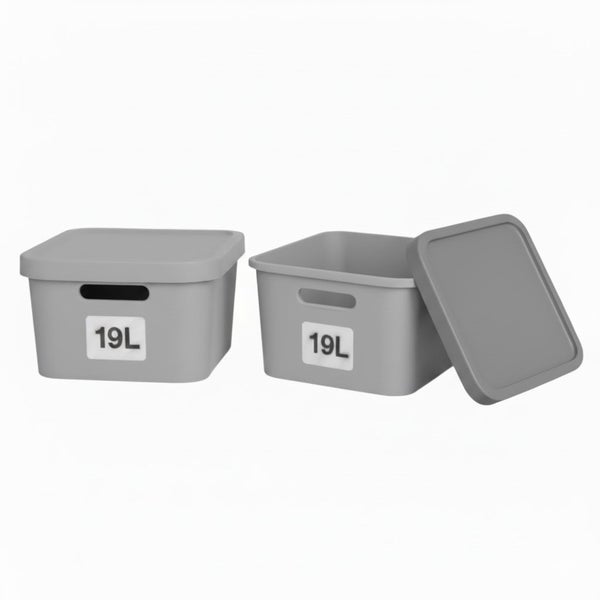 Plastard Aufbewahrungsboxen mit Deckel 19 L, 2er-Set, Grau, BPA-frei, Stapelbar, Ordnungsbox für Küche, Bad, Büro, Kinderzimmer, Regale – Robuste Kunststoffbox, Kleiderbox