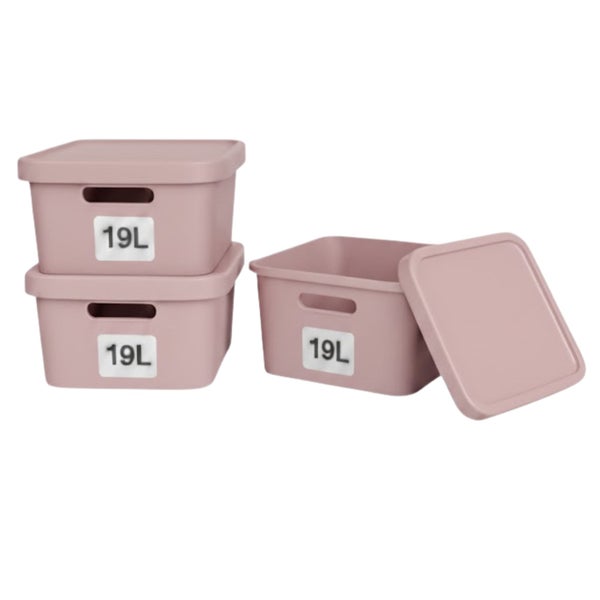 Plastard Aufbewahrungsboxen mit Deckel 19 L, 3er-Set, Pink, BPA-frei, Stapelbar, Ordnungsbox für Küche, Bad, Büro, Kinderzimmer, Regale – Robuste Kunststoffbox, Kleiderbox