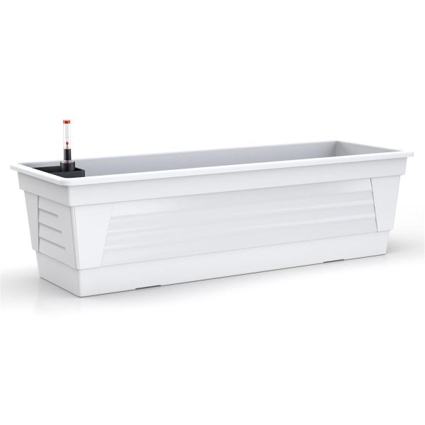 Plastard Blumenkasten Weiß 60x21x17 cm mit Hydroeinsatz und Wasserstandsanzeiger Pflanzkasten Balkonkasten