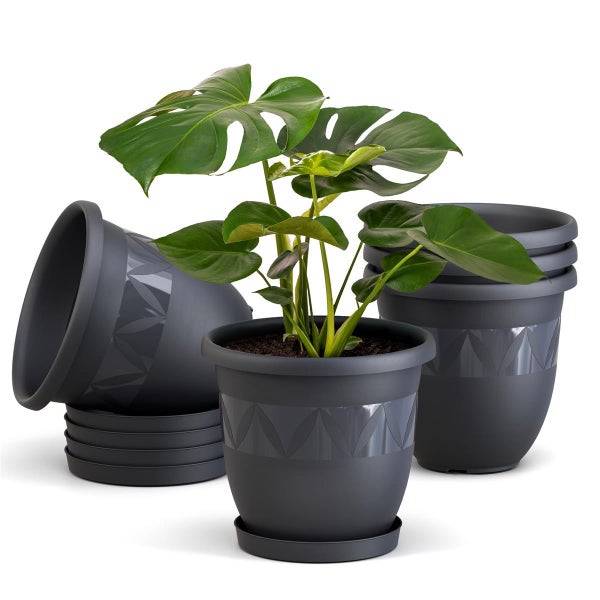 Plastard Blumentopf 5er Set Ø35 cm mit Untersetzer Anthrazit - Pflanzkübel