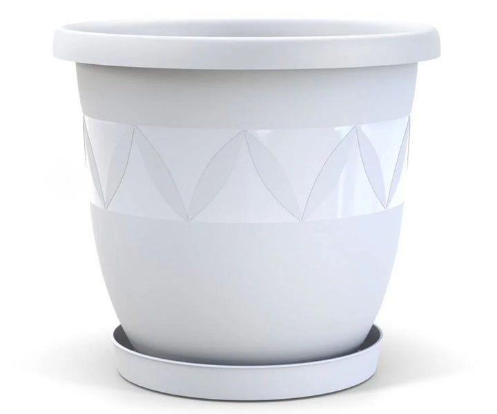 Plastard Blumentopf Capri 15 cm Durchmesser mit Untersetzer in Weiss