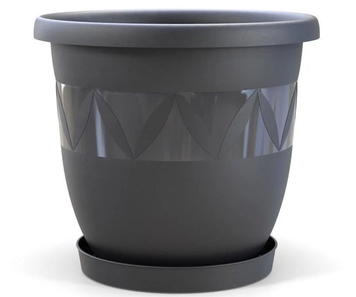 Plastard Blumentopf Capri 40 cm Durchmesser mit Untersetzer in Anthrazit