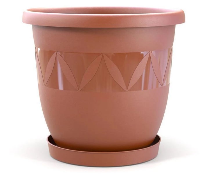 Plastard Blumentopf Capri 47 cm Durchmesser mit Untersetzer in Terrakotta