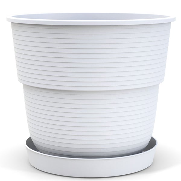 Plastard Blumentopf Milano Ø 22 x 19 cm mit Untersetzer Weiß – wetterfest & frostsicher, 4,6 L