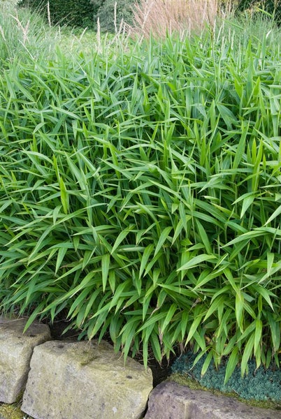 Pleioblastus pumilus, der Zwergbambus oder Kleinbambus, ist ein kompakter Zierbambus aus der Familie der Süßgräser und überzeugt ganzjährig mit dichtem, frischgrünem Laub. Seine schmalen, glänzenden Blätter bilden einen geschlossenen Teppich und sorgen als immergrüner Bodendecker für eine ruhige, elegante Struktur im Garten. Der Wuchs ist niedrig bis mittelhoch, meist 30 bis 60 cm, dabei buschig und durch kurze Halme besonders standfest; als Ziergras-Bambus wirkt er sowohl in formalen Pflanzungen als auch im naturnahen Japangarten harmonisch. Pleioblastus pumilus eignet sich ideal zur Flächenbegrünung, als Rasenersatz in schattigen Bereichen, für Einfassungen, niedrige Hecken und die Unterpflanzung von Gehölzen. Auf Terrasse und Balkon macht er in größeren Kübeln eine hervorragende Figur und kann dort auch als solitär gesetzte Kübelpflanze Akzente setzen, während er im Beet, im Vorgarten oder in Gruppenpflanzungen eine gleichmäßige, pflegeleichte Grünfläche schafft. Am besten gedeiht der Gartenbambus an einem halbschattigen bis schattigen Standort; in Sonne ist eine gleichmäßige Bodenfeuchte wichtig. Der Boden sollte humos, frisch bis mäßig feucht und gut durchlässig sein. Ein Rückschnitt im zeitigen Frühjahr auf Handbreite verjüngt das Laub zuverlässig und hält den Blattschmuck kompakt. Da Pleioblastus pumilus ausläuferbildend wächst, empfiehlt sich bei freier Pflanzung eine Rhizomsperre. In Trocknungsphasen regelmäßig wässern, im Kübel zudem auf gute Drainage achten, damit der Zierstrauch-Bambus vital und dicht bleibt.