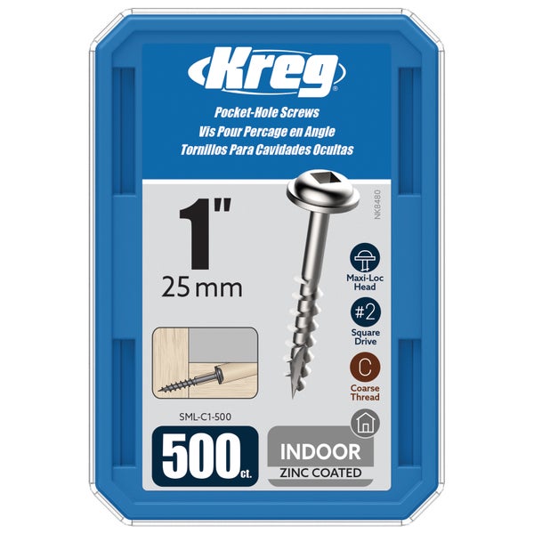 Verzinkt Kreg Pocket-Hole Schrauben sind die Schrauben, die Sie für die meisten Projekte verwenden können. Sie werden für eine Vielzahl von Projekten im Innenbereich empfohlen, die keiner großen Feuchtigkeit ausgesetzt sind. Sie sind ebenfalls für den Einsatz in Küchen und Bädern geeignet.