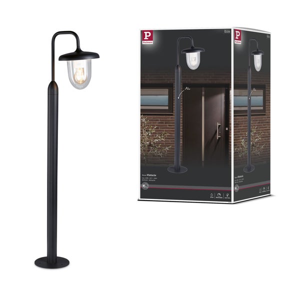Die Pollerleuchte Vintario besticht durch ihr klassisches Design und einem ländlichen Stil. Das anthrazitfarbene Gerüst und der klare Glasschirm sorgen für eine nostalgische Optik. Als Leuchtmittel eignen sich hier besonders die Vollglas-Filamente im Retro-Look. In Kombination mit einer Zigbee 3.0-Lampe ist auch die Steuerung per Smartphone oder Tablet möglich. Mit einem IP-Schutz 44 ist die Leuchte spritzwassergeschützt. Je nach verwendetem Leuchtmittel, ist die Lampe dimmbar.