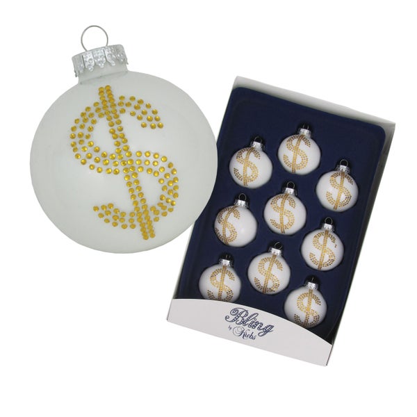 Die Glaskugeln in Porzellanweiß mit US-Dollar-Symbol in Gold Strassdekor sind außergewöhnlicher Christbaumschmuck für die festliche Jahreszeit. Das Sortiment umfasst 9 Stück maschinell produzierte Baumkugeln mit einem Durchmesser von 6cm. Jedes Glasornament strahlt Eleganz und Stil aus und wird garantiert zum Blickfang an Ihrem Weihnachtsbaum. Holen Sie sich dieses hochwertige Set noch heute und verleihen Sie Ihrem Zuhause eine festliche Atmosphäre!