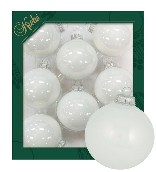 Porzellanweiß glänzend 7cm Glaskugeln uni, 8 Stck., Weihnachtsbaumkugeln, Christbaumschmuck, Weihnachtsbaumanhänger