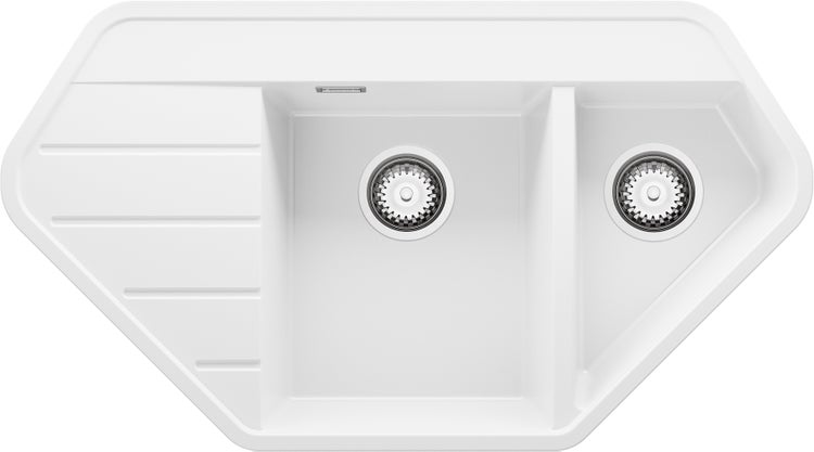 Das Granit-Spülbecken Kopenhagen 900 Corner ist ein Eckmodell mit eineinhalb Becken, das sich durch ein Hauptbecken mit den Maßen 326 mm x 390 mm x 180 mm auszeichnet. Dank der profilierten Abtropffläche gewinnen Sie zusätzlichen Platz zum Trocknen von Geschirr, ohne dabei Arbeitsfläche auf der Arbeitsplatte zu verlieren. Das Spülbecken kann in Unterschränken ab 70 cm und größer installiert werden.