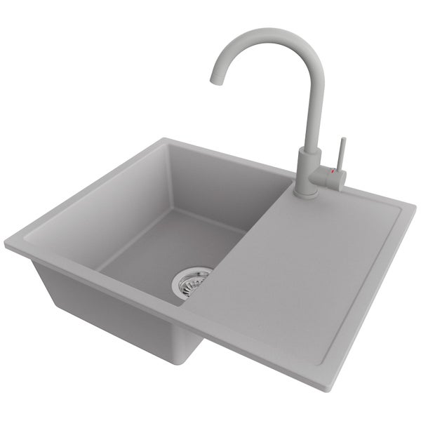 PRIMAGRAN Granitspüle Grau 62x50cm, Spülbecken 1 Becken + Küchenarmatur 32x20cm + Ablauf-Set, Küchenspüle ab 45er Unterschrank - Ibiza