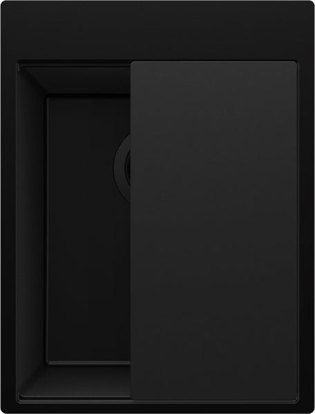 PRIMAGRAN Spülbecken Alles Schwarz 38x50cm, Granitspüle 1 Becken + Ablauf-Set + Schneidebrett, Küchenspüle ab 40er Unterschrank - Oslo