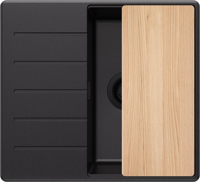 Copenhaga 550-40 Top, komplettes Abflusssystem (hochwertiger Siphon, Überlauf, zusätzlicher Abfluss für den Anschluss an Waschmaschine oder Geschirrspüler) und Schneidebrett.