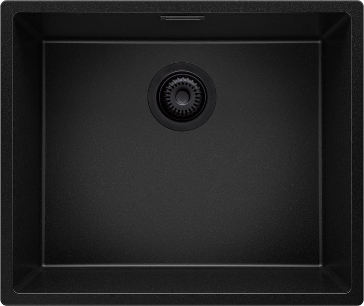 PRIMAGRAN Spülbecken Alles Schwarz 56x47cm, Granitspüle 1 Becken + Ablauf-Set, Küchenspüle ab 60er Unterschrank - London Slim
