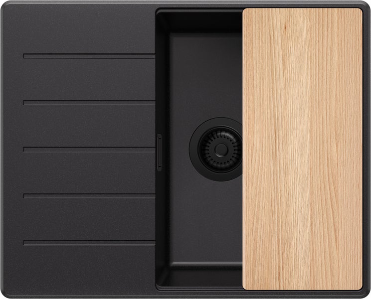 PRIMAGRAN Spülbecken Alles Schwarz 62x50cm, Granitspüle 1 Becken + Ablauf-Set + Schneidebrett, Küchenspüle ab 45er Unterschrank - Kopenhagen
