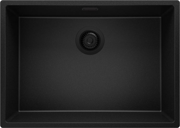 PRIMAGRAN Spülbecken Alles Schwarz 66x47cm, Granitspüle 1 Becken + Ablauf-Set, Küchenspüle ab 70er Unterschrank - London Slim