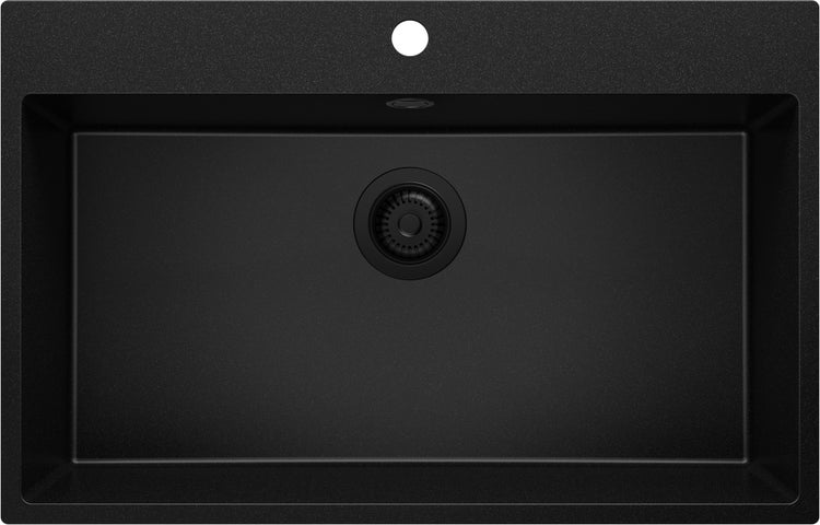 PRIMAGRAN Spülbecken Alles Schwarz 78x50cm, Granitspüle 1 Becken + Ablauf-Set, Küchenspüle ab 80er Unterschrank - Riga