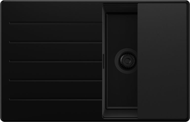 PRIMAGRAN Spülbecken Alles Schwarz 78x50cm, Granitspüle 1 Becken + Ablauf-Set + Schneidebrett, Küchenspüle ab 45er Unterschrank - Kopenhagen