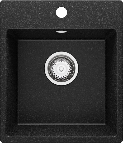 PRIMAGRAN Spülbecken Anthrazit 38x44cm, Granitspüle 1 Becken + Ablauf-Set, Küchenspüle ab 40er Unterschrank - Riga Easy