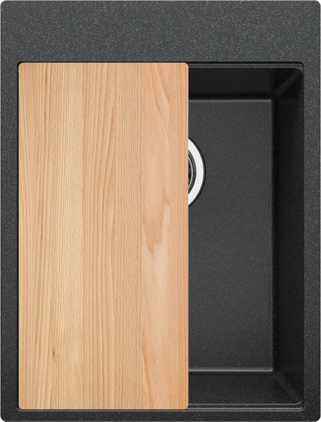 PRIMAGRAN Spülbecken Anthrazit 38x50cm, Granitspüle 1 Becken + Ablauf-Set + Schneidebrett, Küchenspüle ab 40er Unterschrank - Oslo