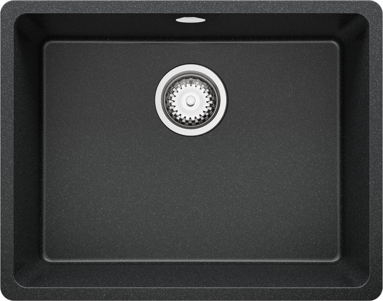 PRIMAGRAN Spülbecken Anthrazit 56x44cm, Granitspüle 1 Becken + Ablauf-Set, Küchenspüle ab 60er Unterschrank - Venedig Slim Easy
