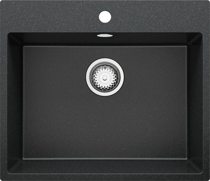 PRIMAGRAN Spülbecken Anthrazit 58x50cm, Granitspüle 1 Becken + Ablauf-Set, Küchenspüle ab 60er Unterschrank - Riga