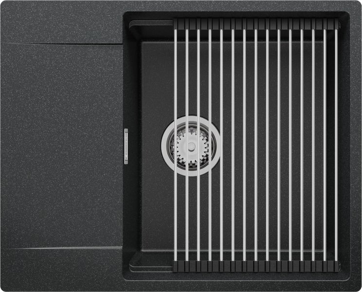 PRIMAGRAN Spülbecken Anthrazit 62x50cm, Granitspüle 1 Becken + Ablauf-Set + Aufrollbare Abtropffläche, Küchenspüle ab 50er Unterschrank - San Francisco