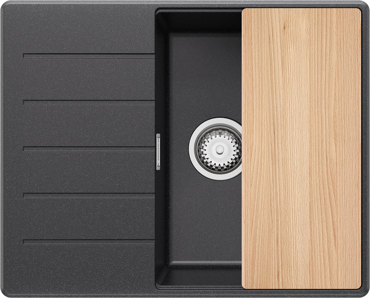 PRIMAGRAN Spülbecken Anthrazit 62x50cm, Granitspüle 1 Becken + Ablauf-Set + Schneidebrett, Küchenspüle ab 45er Unterschrank - Kopenhagen