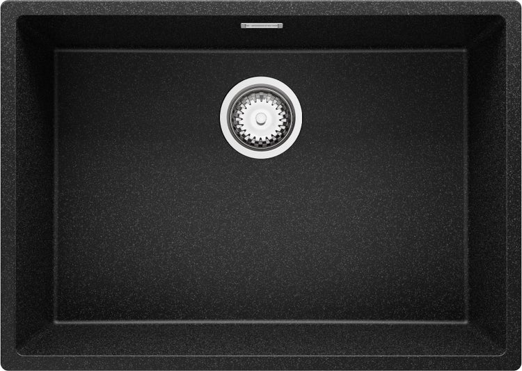 PRIMAGRAN Spülbecken Anthrazit 66x47cm, Granitspüle 1 Becken + Ablauf-Set, Küchenspüle ab 70er Unterschrank - London Slim