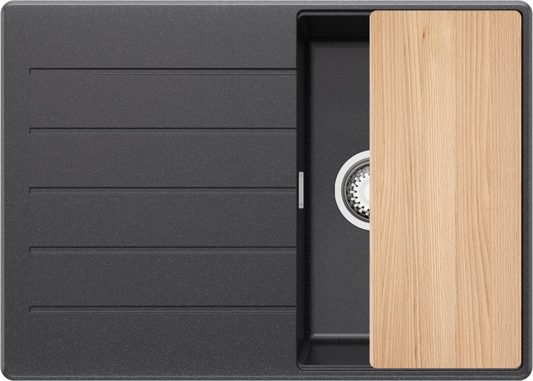 Copenhaga 700-40 Top, komplettes Abflusssystem (hochwertiger Siphon, Überlauf, zusätzlicher Abfluss für den Anschluss an Waschmaschine oder Geschirrspüler) und Schneidebrett.