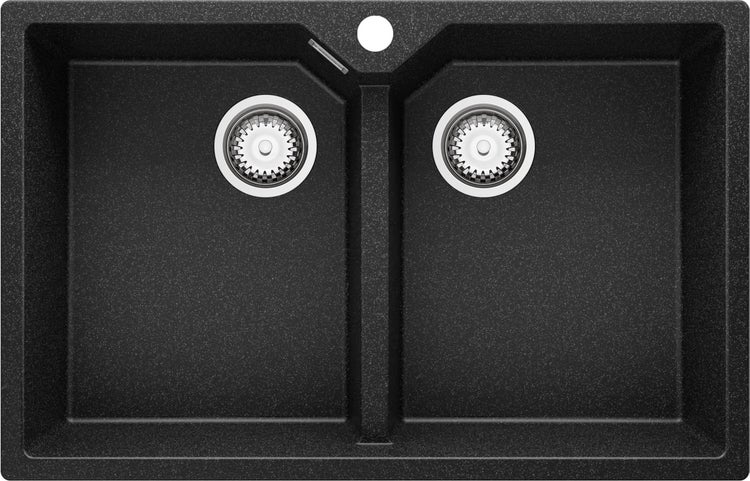 Das Granit-Spülbecken Madrid 80 Twin ist ein Doppelbecken-Modell mit einem originellen Becken-Design, das auf maximale Raumausnutzung bei modernem Design ausgerichtet ist. Dank der innovativen Gestaltung der Armaturenablage bieten wir Ihnen vergrößerte Becken, die ein bequemes Spülen auch von großen ovalen Platten, Brätern und anderen ungewöhnlich langen Gefäßen ermöglichen. Das Granit-Spülbecken kann in einem Unterschränk mit einer Breite von 80 cm und größer installiert werden.