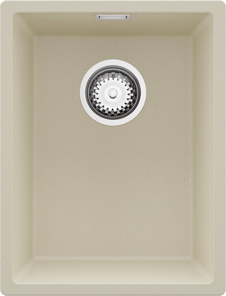 PRIMAGRAN Spülbecken Beige 36x47cm, Granitspüle 1 Becken + Ablauf-Set, Küchenspüle ab 40er Unterschrank - London Slim