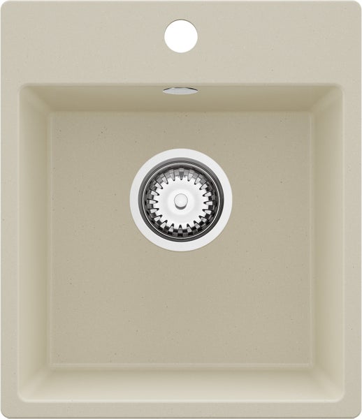 PRIMAGRAN Spülbecken Beige 38x44cm, Granitspüle 1 Becken + Ablauf-Set, Küchenspüle ab 40er Unterschrank - Riga Easy