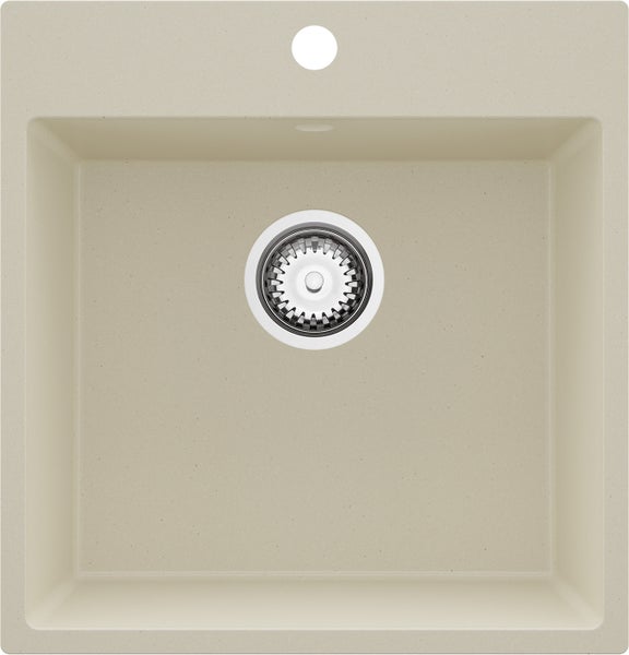 PRIMAGRAN Spülbecken Beige 48x50cm, Granitspüle 1 Becken + Ablauf-Set, Küchenspüle ab 50er Unterschrank - Riga
